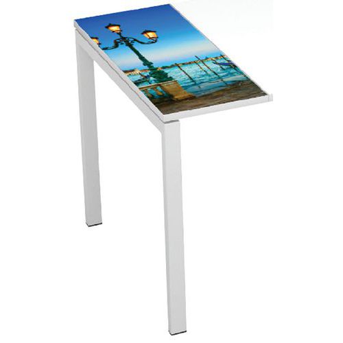 Biurko proste, przeznaczone do biur. Radosny kolorowy design ożywi każde wnętrze. Metalowa konstrukcja i metalowe teleskopowe belki zapewniają wysoką stabilność stołu. Blat posiada obrzeże PCW o gr. 2 mm. Powierzchnia pokryta białą farba epoksydową.