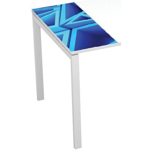 Biurko proste, przeznaczone do biur. Radosny kolorowy design ożywi każde wnętrze. Metalowa konstrukcja i metalowe teleskopowe belki zapewniają wysoką stabilność stołu. Blat posiada obrzeże PCW o gr. 2 mm. Powierzchnia pokryta białą farba epoksydową.