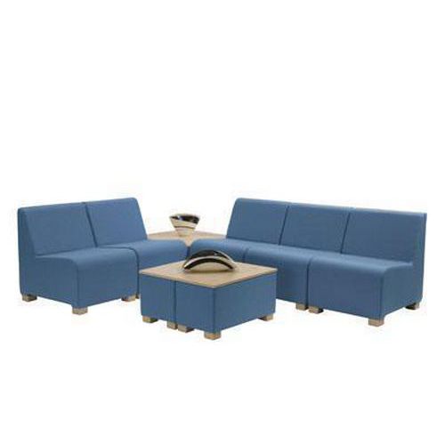 - Tapicerowane prostokątne stoły z blatem górnym wyposażonym w obrzeże ABS. Można je dowolnie składać w różne zestawy i łączyć z fotelami Trio Blue. Możliwość użycia jako stoły konferencyjne lub elementy działowe pomiędzy fotelami. Nóżki stołu wykonane z wysokiej jakości buku, nośność 60 kg.