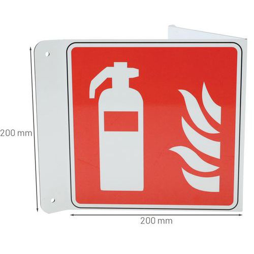 Znaki przeciwpożarowe w kształcie litery V, które służą do identyfikacji lokalizacji gaśnic w celu szybkiej reakcji w przypadku pożaru. Do przymocowania do każdej gładkiej, odtłuszczonej i czystej powierzchni. Laminacja polimerowa chroni znaki przed zużyciem fizycznym i filtruje niektóre Promienie UV.