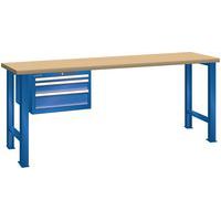 Stół warsztatowy LISTA, 1500x700x840mm, 3 szuflady, nośność 600 kg, kolor fluorescencyjny niebieski Stół warsztatowy LISTA, 1500x700x840mm, 3 szuflady, nośność 600 kg, kolor fluorescencyjny niebieski