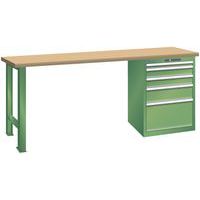 Stół warsztatowy LISTA, 1500x700x840mm, 5 szuflad, nośność 1500 kg, zielony Stół warsztatowy LISTA, 1500x700x840mm, 5 szuflad, nośność 1500 kg, zielony