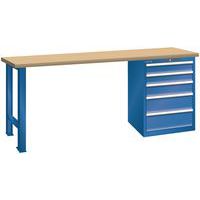 Stół warsztatowy LISTA, 1500x700x890mm, udźwig 1500 kg, 5 szuflad, ciemnoniebieski Stół warsztatowy LISTA, 1500x700x890mm, udźwig 1500 kg, 5 szuflad, ciemnoniebieski