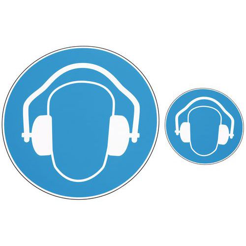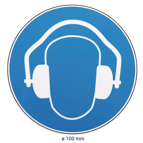 Stosuj ochronniki słuchu - naklejka - Manutan Expert o średnicy 100 mm
