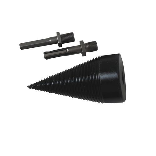 Stożek do łupania drewna TOPTRADE, 2 x adapter 65 mm, SDS+ i sześciokąt, 32 x 90 mm