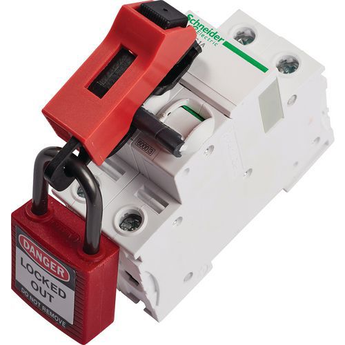 - Kłódka na bezpieczniki służy jako bezpieczny sposób blokady bezpieczników.