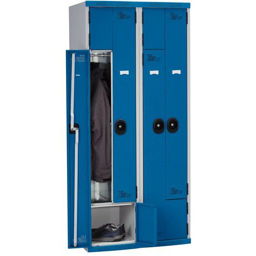 | Nazwa produktu | Szafa szatniowa Acial, o konstrukcji spawanej, drzwi Z, 4 przedziały, zamek cylindryczny, szara/niebieska |