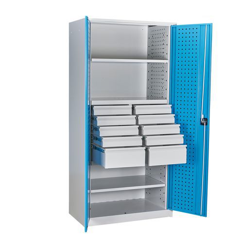 | Nazwa produktu | Szafa warsztatowa metalowa, 195 x 95 x 50 cm, 2 półki, 10 szuflad |