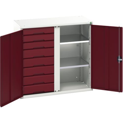 Szafka metalowa Bott Verso, 100 x 105 x 55 cm, 2 półki, 8 szuflad, szaro-czerwona Szafka metalowa Bott Verso, 100 x 105 x 55 cm, 2 półki, 8 szuflad, szaro-czerwona