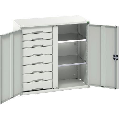 Metalowa szafka do przechowywania Bott Verso, 100 x 105 x 55 cm, 2 półki, 8 szuflad, szaro-szara Metalowa szafka do przechowywania Bott Verso, 100 x 105 x 55 cm, 2 półki, 8 szuflad, szaro-szara