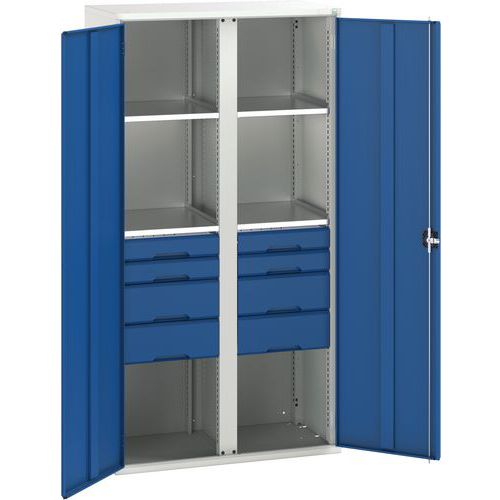 Szafka metalowa Bott Verso, 200 x 105 x 55 cm, 4 półki, 8 szuflad, szaro-niebieska Szafka metalowa Bott Verso, 200 x 105 x 55 cm, 4 półki, 8 szuflad, szaro-niebieska