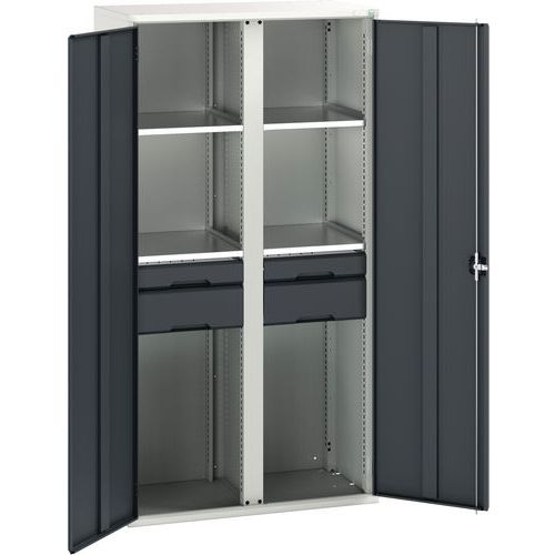 Szafka konserwacyjna metalowa Bott Verso, 200 x 105 x 55 cm, 4 półki, 4 szuflady, szaro-antracyt Szafka konserwacyjna metalowa Bott Verso, 200 x 105 x 55 cm, 4 półki, 4 szuflady, szaro-antracyt