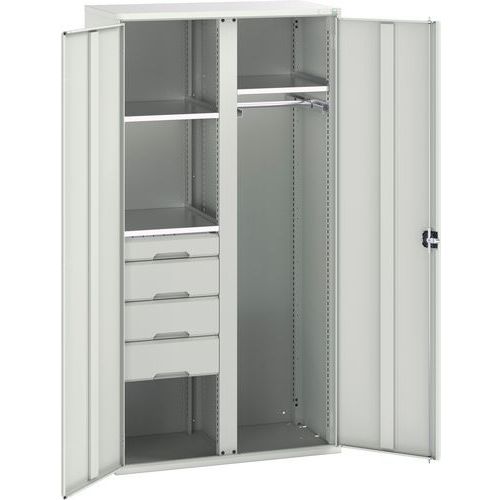 Metalowa szafka konserwacyjna Bott Verso, 200 x 105 x 55 cm, 3 półki, 4 szuflady, szaro-szara Metalowa szafka konserwacyjna Bott Verso, 200 x 105 x 55 cm, 3 półki, 4 szuflady, szaro-szara