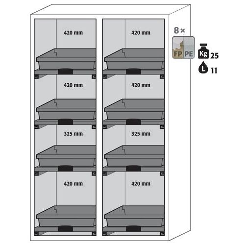Szafki na substancje żrące, 1965 x 1197 x 603 mm, PP, 2 przedziały