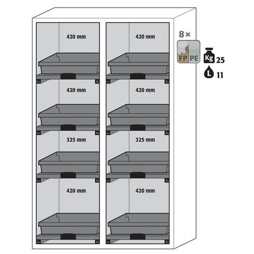Szafki na substancje żrące, 1965 x 1197 x 603 mm, PP, 2 przedziały