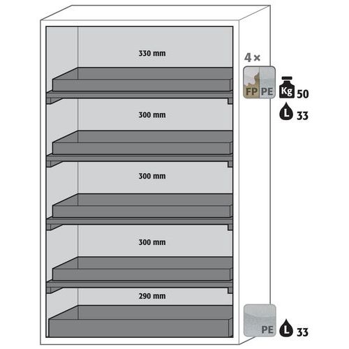 Szafka przeciwpożarowa na substancje łatwopalne, Asecos, 1968 x 1196 x 616 mm, PP, 4 półki wychwytowe, wanna