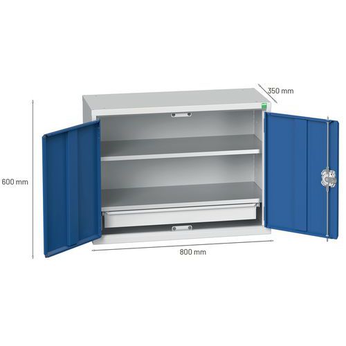 Szafka ścienna Bott Verso, 60 x 80 x 35 cm, 2 półki, 1 półka, szaro-niebieska