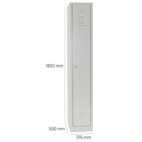 Szafy szatniowe o konstrukcji spawanej, w jakości premium, składające się z jednego oddzielnie zamykanego przedziału.