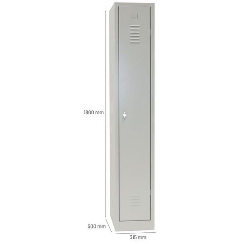 Szafy szatniowe o konstrukcji spawanej, w jakości premium, składające się z jednego oddzielnie zamykanego przedziału.