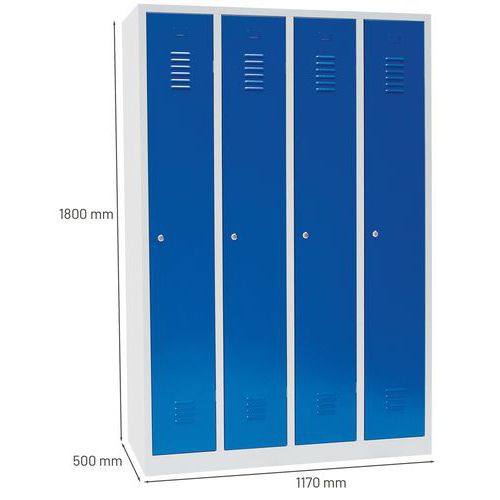 Szafka szatniowa o konstrukcji spawanej, Manutan Expert DURO PROFI, 4 przedziały, szary/niebieski