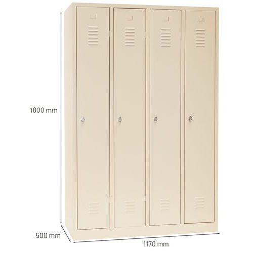 Szafka szatniowa o konstrukcji spawanej, Manutan Expert DURO PROFI, 4 przedziały, beżowy/beżowy