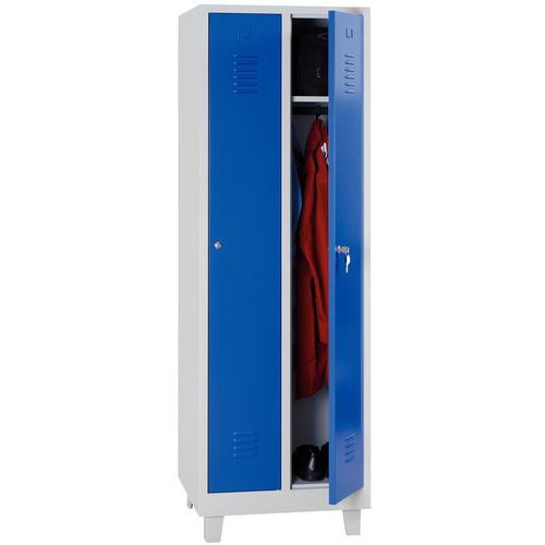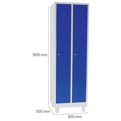 Szafka szatniowa o konstrukcji spawanej, Manutan Expert DURO PROFI na nóżkach, 2 przedziały, szary/niebieski
