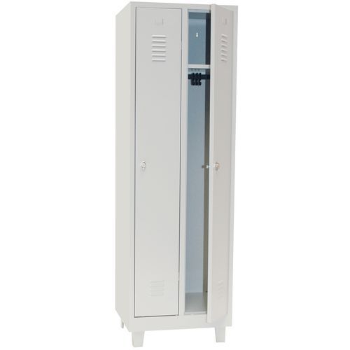Szafka szatniowa o konstrukcji spawanej, Manutan Expert DURO PROFI na nóżkach, 2 przedziały, szary/szary