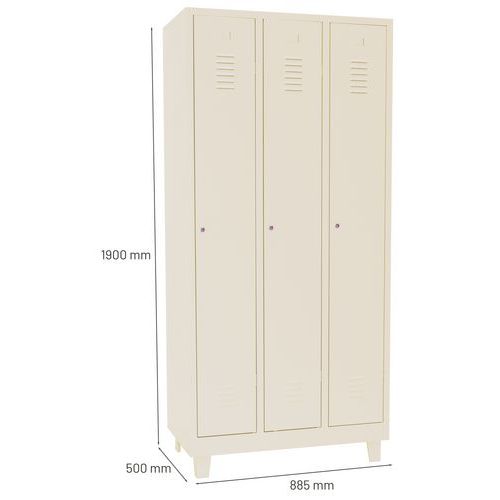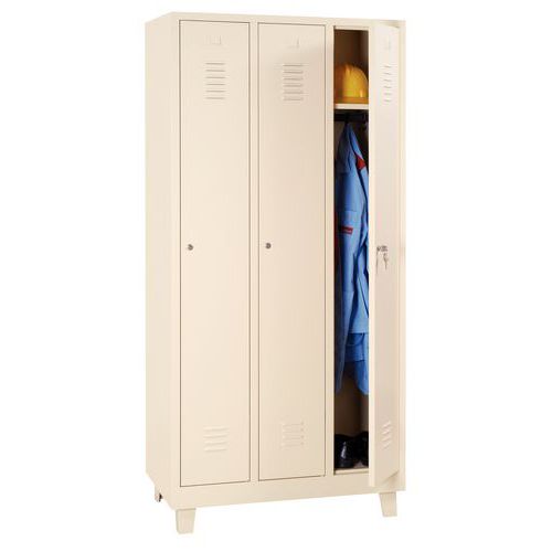 Szafka szatniowa o konstrukcji spawanej, Manutan Expert DURO PROFI na nóżkach, 3 przedziały, beżowy/beżowy