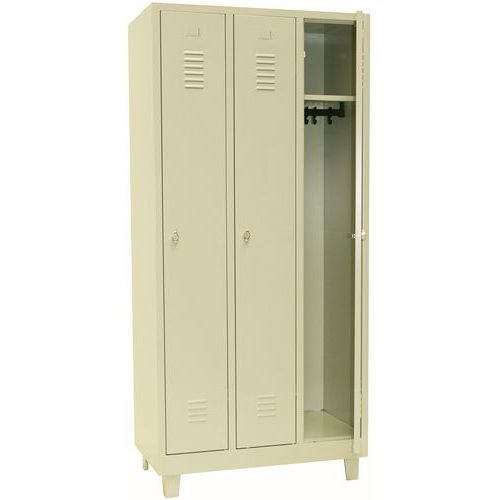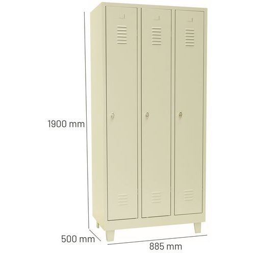 Szafka szatniowa o konstrukcji spawanej, Manutan Expert DURO PROFI na nóżkach, 3 przedziały, beżowy/beżowy