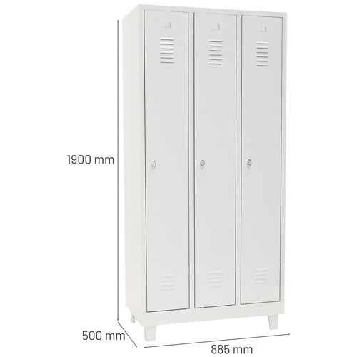 Szafki szatniowe o konstrukcji spawanej, Manutan Expert DURO PROFI na nóżkach, 3 przedziały