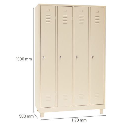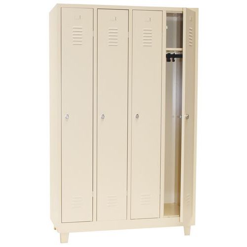 Szafka szatniowa o konstrukcji spawanej, Manutan Expert DURO PROFI na nóżkach, 4 przedziały, beżowy/beżowy