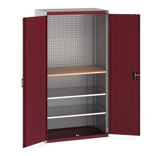 - Tył szafy i tył szafy wewnątrz drzwi wyposażone są w perforowane panele do mocowania uchwytów narzędziowych.