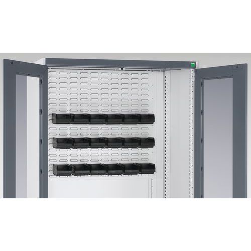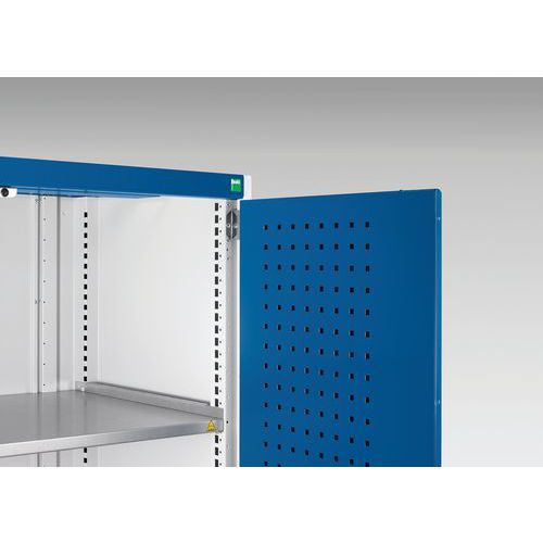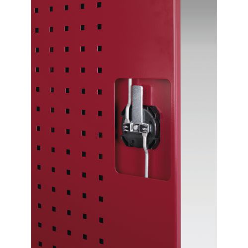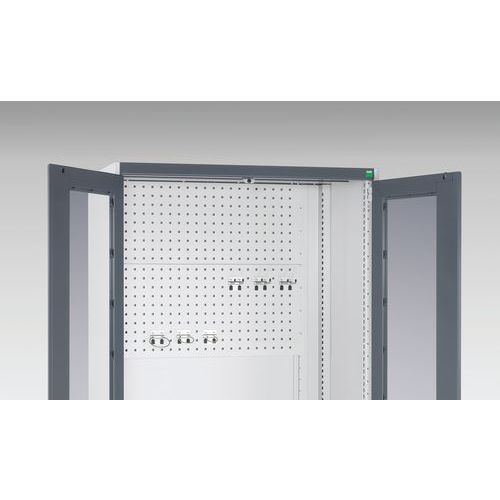 - Tył szafy i tył szafy wewnątrz drzwi wyposażone są w perforowane panele do mocowania uchwytów narzędziowych.