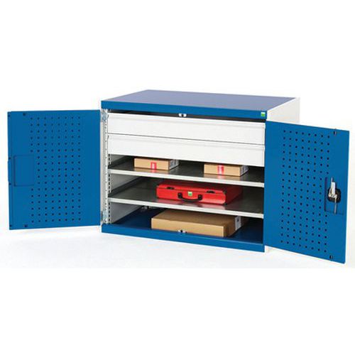 - Wzmocnione drzwi skrzydłowe z perforowaną stroną wewnętrzną do przechowywania narzędzi.