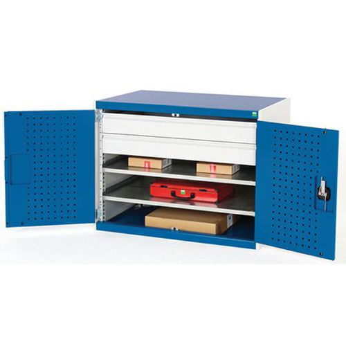 - Wzmocnione drzwi skrzydłowe z perforowaną stroną wewnętrzną do przechowywania narzędzi.