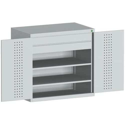 Szafka warsztatowa z szufladami Bott Cubio, 100 x 105 x 65 cm, 2 półki, 2 szuflady, szaro-szara