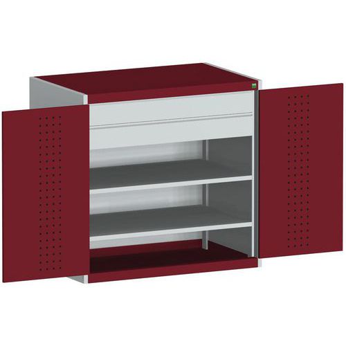 Szafka warsztatowa z szufladami Bott Cubio, 100 x 105 x 65 cm, 2 półki, 2 szuflady, szaro-czerwony