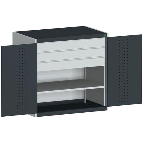 Szafka warsztatowa z szufladami Bott Cubio, 100 x 105 x 65 cm, 1 półka, 3 szuflady, szaro-antracyt
