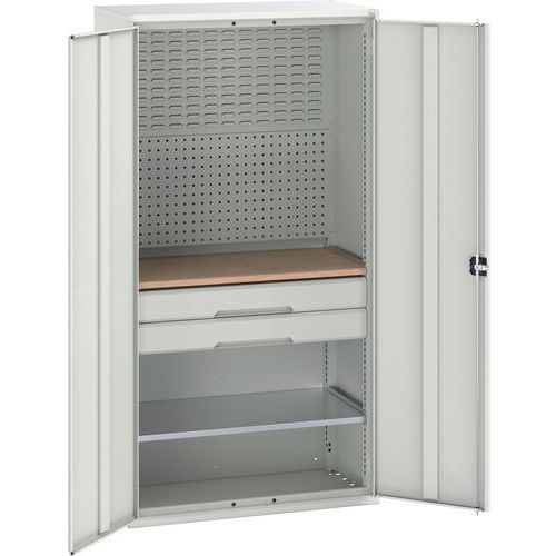 Szafka warsztatowa z szufladami Bott Verso, 200 x 105 x 55 cm, 1 półka, 2 szuflady, szaro-szara