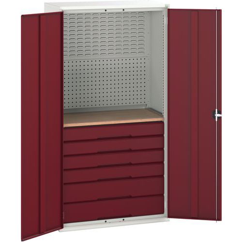 Szafka warsztatowa z szufladami Bott Verso, 200 x 105 x 55 cm, 6 szuflad, szaro-czerwona