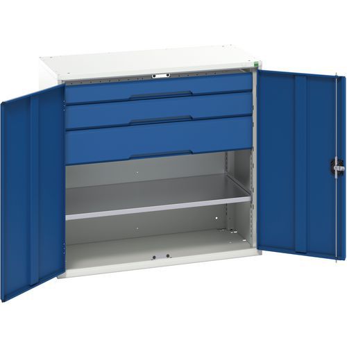 Szafka warsztatowa z szufladami Bott Verso, 100 x 105 x 55 cm, 1 półka, 3 szuflady, szaro-niebieski