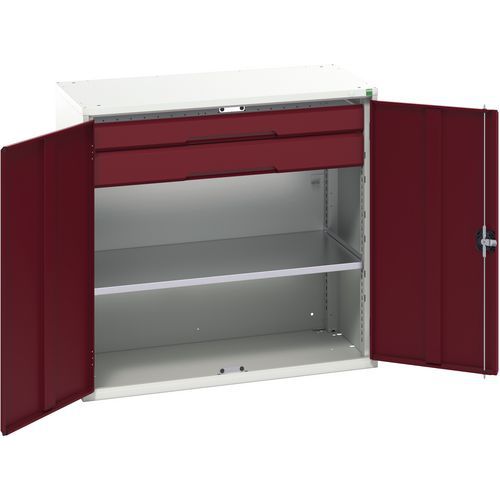 Szafka warsztatowa z szufladami Bott Verso, 100 x 105 x 55 cm, 1 półka, 2 szuflady, szaro-czerwony