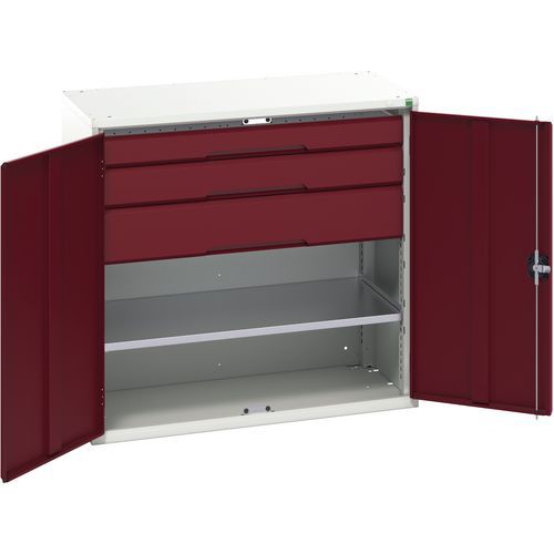 Szafka warsztatowa z szufladami Bott Verso, 100 x 105 x 55 cm, 1 półka, 3 szuflady, szaro-czerwony