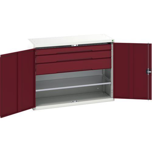 Szafka warsztatowa z szufladami Bott Verso, 100 x 130 x 55 cm, 1 półka, 3 szuflady, szaro-czerwony