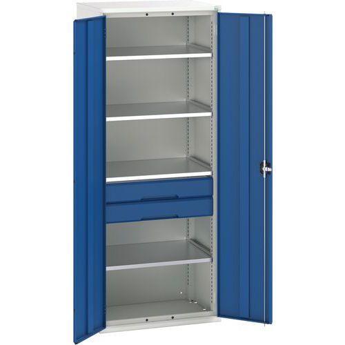 Szafka warsztatowa z szufladami Bott Verso, 200 x 80 x 55 cm, 4 półki, 2 szuflady, szaro-niebieski