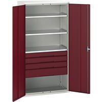 Szafka warsztatowa z szufladami Bott Verso, 200 x 105 x 55 cm, 3 półki, 4 szuflady, szaro-czerwony