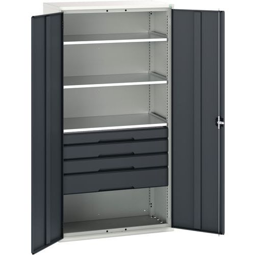 Szafka warsztatowa z szufladami Bott Verso, 200 x 105 x 55 cm, 3 półki, 4 szuflady, szaro-antracyt