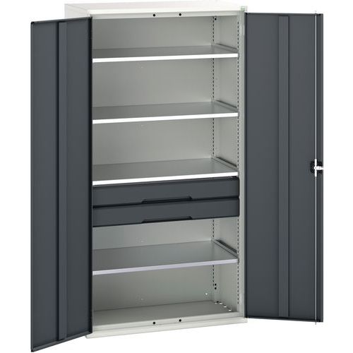 Szafka warsztatowa z szufladami Bott Verso, 200 x 105 x 55 cm, 4 półki, 2 szuflady, szaro-antracyt