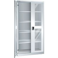 Szafki warsztatowe LISTA z półkami, 1000x400x1950mm, drzwi z pleksi, szare