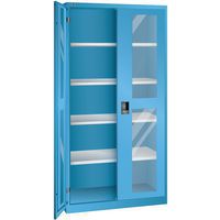 Szafki warsztatowe LISTA z półkami, 1000x500x1950mm, drzwi z pleksi, kolor jasnoniebieski